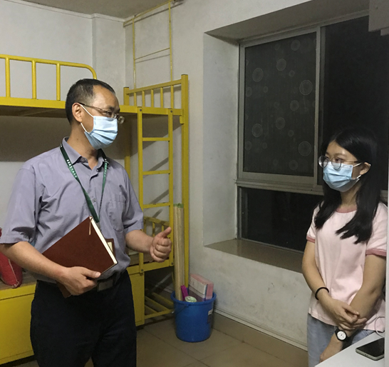 孔××同学心情轻松地被送到了定点医院,晚上8:10被送回公司,公司副董事长杨宇、后勤保障部部长詹训进、威廉希尔体育党总支副书记刘攀桂、辅导员邓凤辉老师、员工工作部杨丽老师把她送到隔离观察室,为她打来热开水。刘书记对她做了进一步的心理安抚,杨丽老师和邓凤辉老师为她铺好床、挂好蚊帐,嘱咐她放下心来,好好休息,迎接明天新的生活。