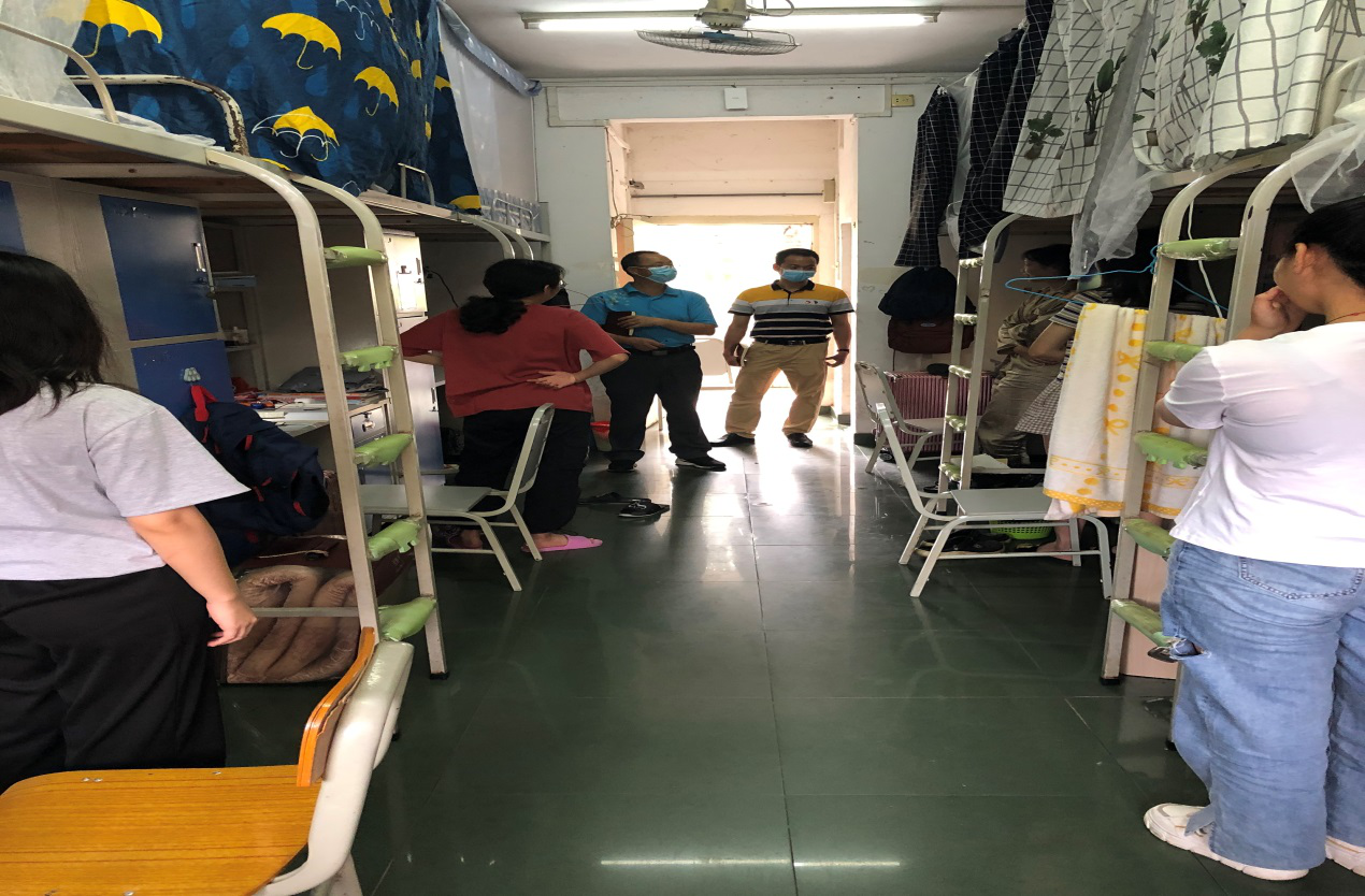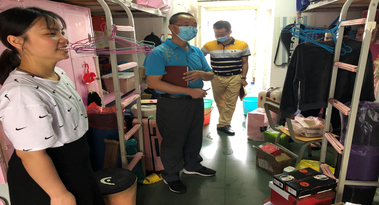 公司领导带领辅导员看望返校员工 发布日期:2020年06月01日 00:00 访问量:次 5月31日下午,公司刘攀桂副书记和高恒冠副经理及辅导员王淑妍到桂园、松园两栋员工宿舍楼,看望返校员工。同学们与老师们进行亲切的交谈,很开心可以重返校园、重见老师同学们。 上一条: 隔空不隔爱,线上送温情——公司辅导员通过电话“走访”身在东莞、深圳部分员工 下一条:辅导员开学健康第一课 【关闭】
