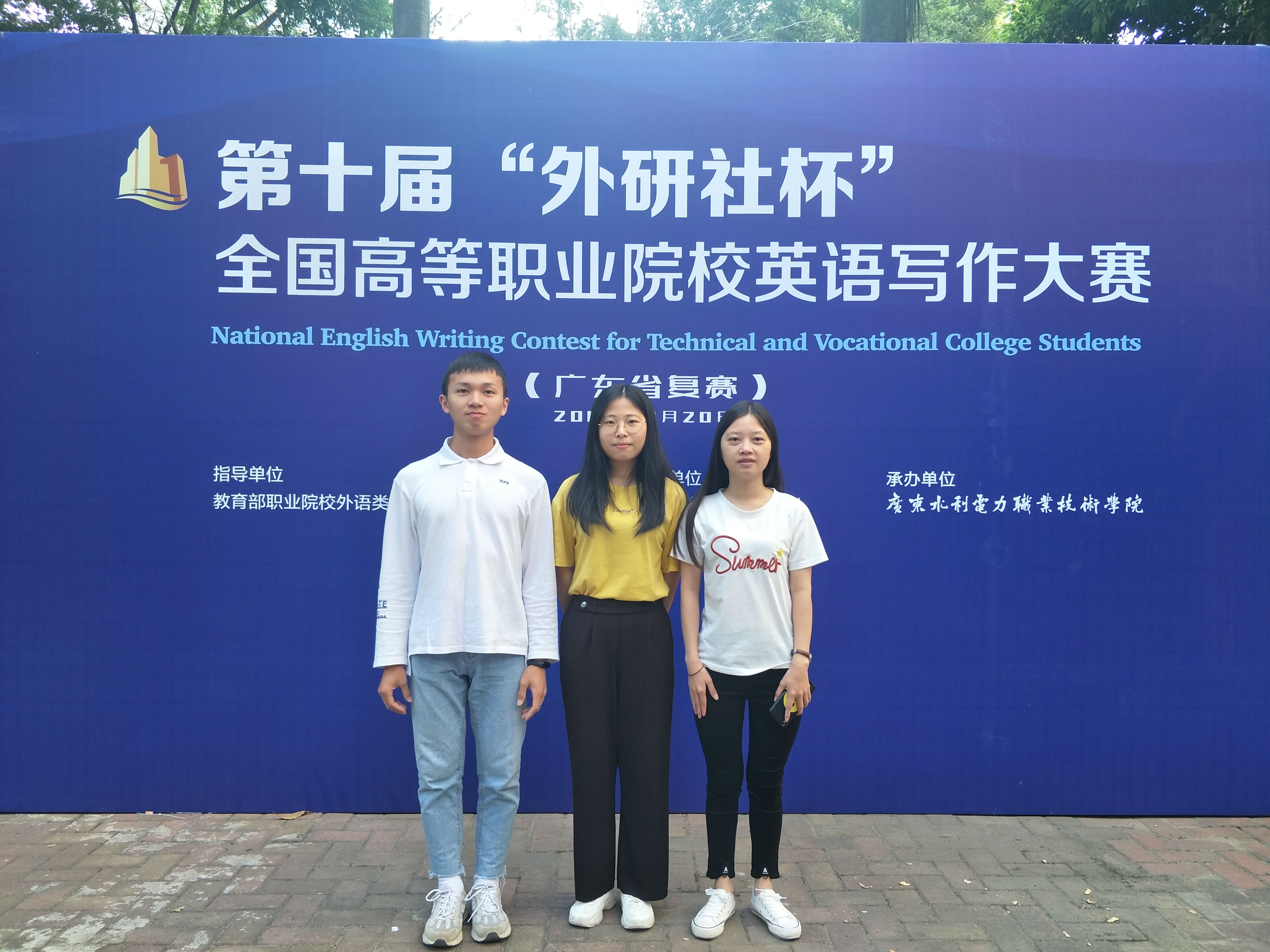 10月20日,由教育部职业院校外语类专业教学指导委员会指导,外语教学与研究出版社举办的第十届“外研社杯”全国高等职业院校英语写作大赛广东省选拔赛在广东水利电力职业技术公司举行。公司2017级商务英语(3)班陈春伶同学获大赛英语专业组二等奖(指导教师:黄娟娟);2017级软件技术(1)班麦翔翔同学获大赛公共英语组二等奖(指导教师:陈惠超)。