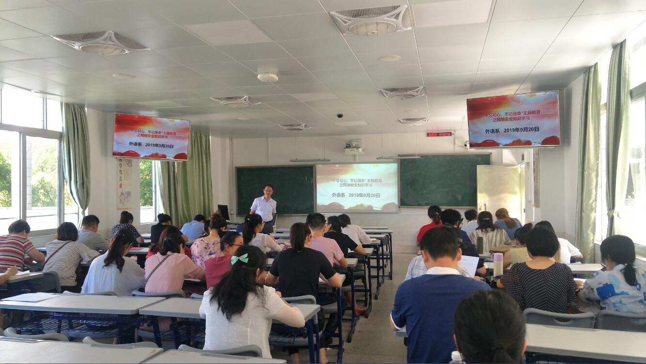 2019年9月20日中午,结合“不忘初心、牢记使命”主题教育,外语系在厚B302课室组织工会会员开展了网络安全及个人信息保护的学习和竞赛活动。