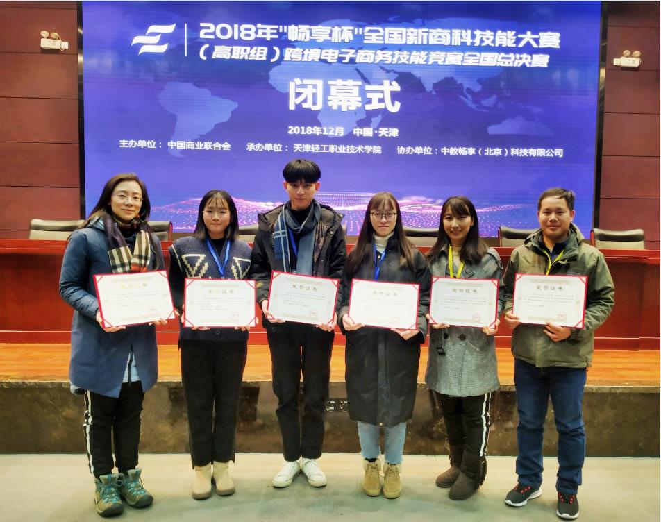 2018年12月23日,公司代表队在2018年“畅享杯”全国新商科技能大赛(高职组)跨境电子商务技能竞赛全国总决赛中从全国66个参赛队伍中脱颖而出,荣获一等奖。