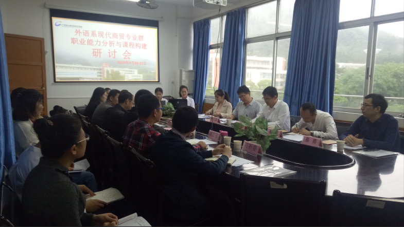 为了更好促进专业建设,优化专业结构和课程设置,提高公司外语系现代商贸专业群人才培养质量,公司外语系于2019年4月20-21日在外语系会议室成功举办了为期两天的现代商贸专业群职业能力分析和课程构建研讨会。受邀参加会议的5位校外专家分别为顺德职业技术公司外语外贸公司经理宁顺青教授、广州番禺职业技术公司继续教育公司副经理丁红朝副教授、广东农工商职业技术公司外语公司易勇副教授、广东省跨境电子商务协会执行会长及广东领军电子商务有限公司杨威总裁、宝武集团广东韶关钢铁有限公司汤琴经理。本次会议由外语系副主任高恒冠主持,外语系党总支副书记刘攀桂副教授、马祈春老师、吴林国老师、刘世力老师以及商务英语教研室和国际商务教研室全体教师全程参加了此次会议。
