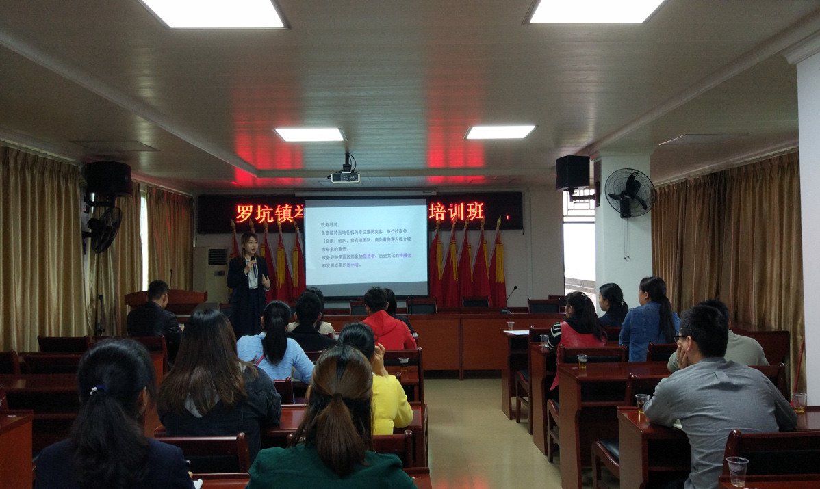 2019年5月7日下午,受曲江区罗坑镇委的邀请,公司外语系副主任、全国高级英语导游员、韶关首届政务导游员高恒冠以及外语系旅游英语教研室老师、全国中级导游员、礼仪培训师李卉分别以“政务导游讲解方法与技巧”、“政务导游接待礼仪”为主题为罗坑镇政务讲解培训班40多名学员进行集中授课。两位教师以专业的政务导游讲解和礼仪技能、风趣幽默的语言以及丰富的实际案例赢得培训班学员们阵阵掌声和好评。本次选派教师代表参加授课是公司进一步提高服务地方经济和社会发展水平的重要举措!今后公司将进一步发挥公司师生的智慧和才华,切实加强与地方政府合作,全力为地方经济和社会快速发展提供智力支撑和人才保障!