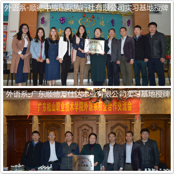 为进一步提升人才培养质量以及为员工提供更多更好的顶岗实习和就业机会,2016年12月9日至10日,威廉希尔体育外语系分别与顺德中旅国际旅行社有限公司和广东顺德万仕达木业有限公司举行校企合作交流会,签订了校企合作协议,并举行校外实习基地授牌仪式。会议期间,校企双方回顾和总结了前期的校企合作经验,并表示以此次交流会为契机,进一步加强校企双方在协同育人、顶岗实习、毕业生就业、资源共享、团队培训等方面的合作。