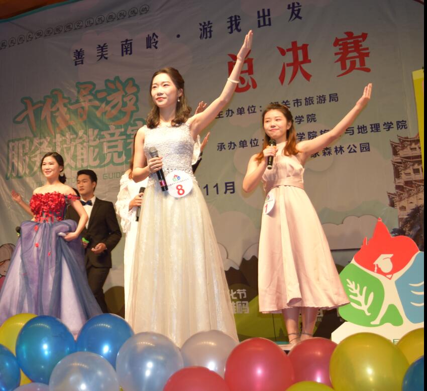 2017年11月24日晚,2017年韶关市老员工旅游文化节之“十佳导游服务技能竞赛”决赛在韶关公司音乐厅精彩上映。本次大赛由韶关市旅游局、韶关公司以及韶关市南岭国家森林公园管理委员会共同主办,韶关公司旅游与地理公司承办,有来自威廉希尔体育、韶关公司、仁化中等职业公司、乳源中等职业技术公司等多所院校的中、泰两国共10名员工展开强强争霸。本次服务技能竞赛以“善美南岭·游我出发”为主题,经过海选、初赛、复赛等层层选拔,共有10名优秀选手进入决赛。10位选手通过南岭国家森林公园景点导游词讲解、导游知识问答、情景模拟、才艺表演以及南岭手信微视频宣传推广等五个环节展现各自风采。我系2015级旅游英语2班杨采妮同学一路披荆斩棘,最终再一次勇夺本次大赛“银牌导游”(指导老师:刘玉端)。2016级旅游管理2班黎海燕最终获得本次大赛“铜牌导游”(指导老师:李卉)。
