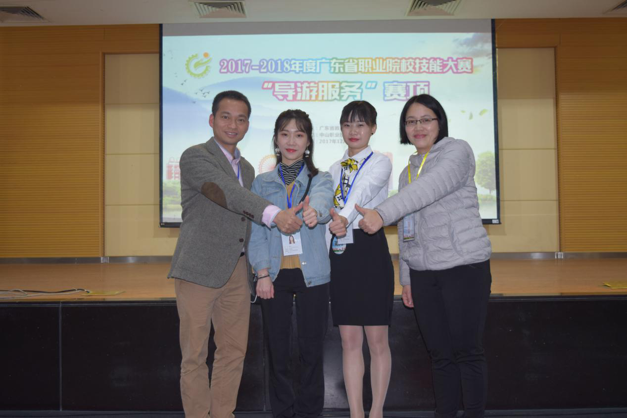 12月27-28日,由广东省教育厅主办的2017-2018年度广东省职业院校技能大赛导游服务赛项在中山职业技术公司隆重举行。公司外语系2015级旅游英语1班的杨彩妮同学荣获普通话组导游比赛二等奖(指导老师:刘玉端),2015级旅游英语2班的魏美娟同学荣获英语组导游比赛三等奖(指导老师:杨琳玲)。