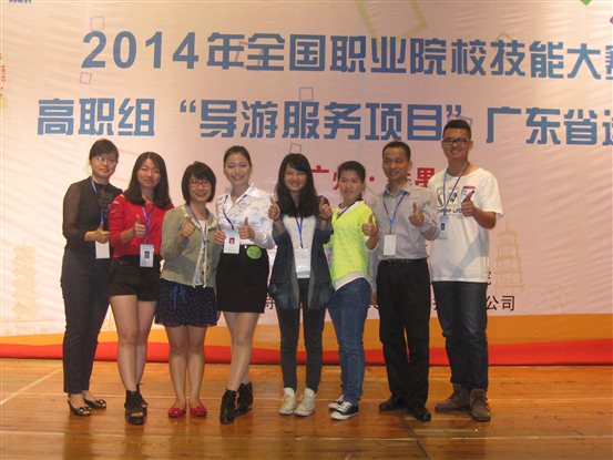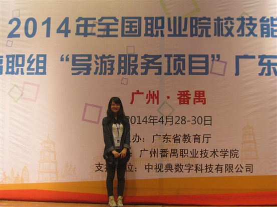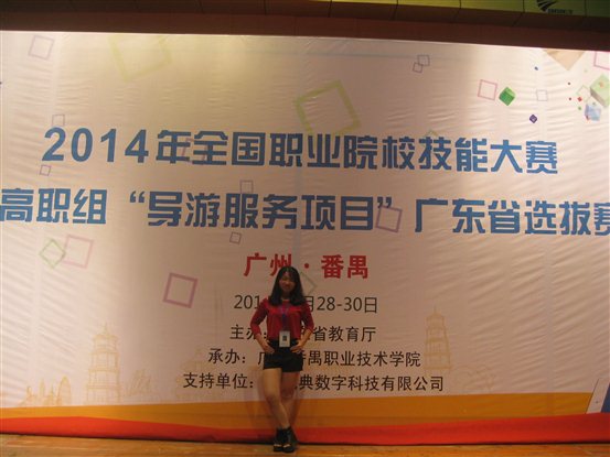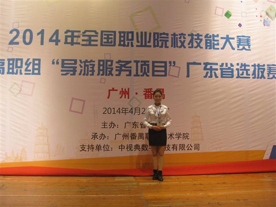 近悉,在2014年广东省职业院校技能大赛“导游服务项目”比赛上,公司外语系12级旅游英语专业三位同学荣获了二等奖,其中陈秋燕同学荣获英语组二等奖(指导教师:宋颖),郭泽琪、吴桂蓉同学荣获普通话组二等奖(指导教师:曾永华、李卉)。