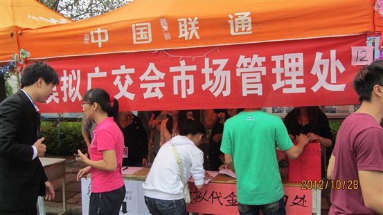 外语系“首届模拟广交会”是公司首届商务文化节的重要组成部分,由外语系商务英语教研室统筹策划,于本月27日早上举行了“首届模拟广交会”表演赛,主要有卖家产品宣传广告表演和买家异域风情秀;并于28日在桂园门口盛大举行。