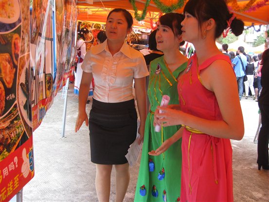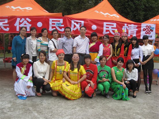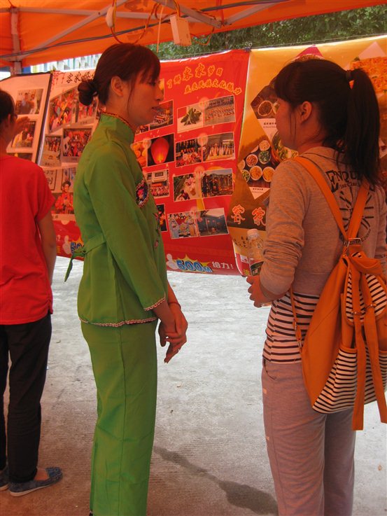 作为公司首届商务文化节的一个重要环节,本次“中国旅游城市与民俗风情展”由外语系旅游英语专业教师悉心指导,旅游英语专业员工实践完成。展览会主要包括旅游城市体验馆和民俗风情馆等,向全院师生展示了4个中国旅游城市的魅力和六个少数民族的文化风情。在为期2天的展览会中,外语系旅游英语专业大二和大三员工作为讲解员,身穿少数民族服饰,为广大师生提供咨询服务。此外,精彩的竹竿舞,更让参观者们亲身体验了少数民族的生活文化。