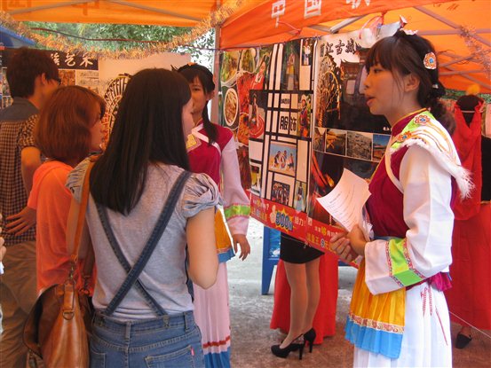 2012年10月26日,外语系“中国旅游城市与民俗风情展”在桂园楼下拉开帷幕。