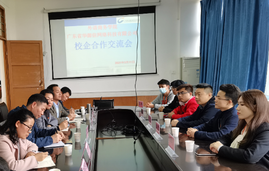 2021年3月11日下午,广东华源信网络科技有限公司总经理周湧、电商培训主管张馨月、运营主管成林以及江南传媒韶关分公司总经理郭凯、主管赵瑞青莅临公司洽谈校企合作事宜。威廉希尔体育党总支书记高贺、副经理高恒冠、副书记黄仁强、办公室主任唐晓霞及相关教研室正副主任参加本次校企交流会。威廉希尔体育与广东华源信网络科技有限公司于2020年12月已正式签订校企合作协议,并与该公司共建直播产业老员工实践基地。