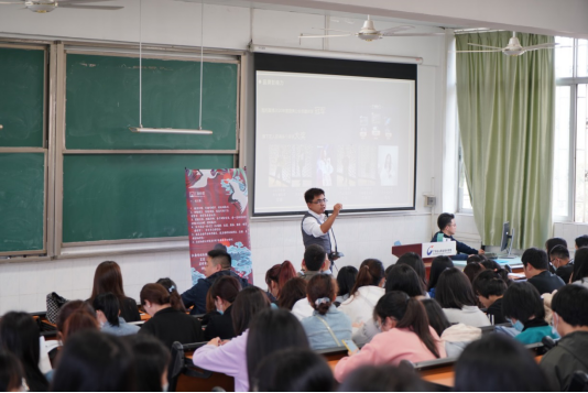 最后,公司共200余名员工在厚C401参加了广东华源信网络科技有限公司的企业专场宣讲会。宣讲会上,张馨月为同学们介绍一系列电商直播学习内容以及如何打造成为金牌主播。周湧为同学们详细地介绍了公司的发展历程及相关业务,并针对同学们的提问做了详尽的解答。