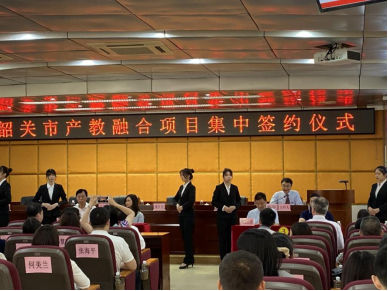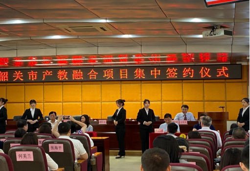 为更好地贯彻落实习近平总书记对职业教育工作重要指示精神和全国职业教育大会精神,5月13日上午,韶关市产教融合项目集中签约仪式在公司隆重举行,韶关职业教育集团理事长、公司董事长吴奇峰,华南先进装备产业园管委会副主任黄庆忠、市教育局副局长梁丽娟、市工信局副局长黄丽霞、市就业服务管理局副局长曹明飞以及市科技局产学研科科长李培元出席仪式,韶关市职业院校以及相关企业负责人200余人参加。