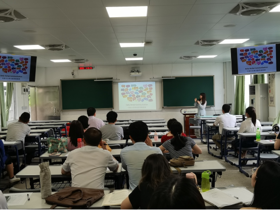最后商务英语教研室的神瑶老师以中西方日常交际用语差异为主题开展课程思政示范课,与全院老师分享了如何在英语教学中融入课程思政的元素。
