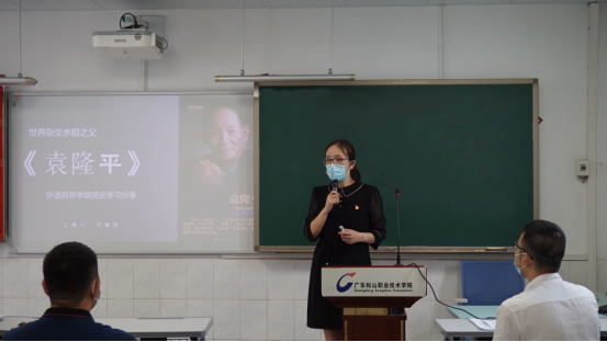 会上,邓鹏丽老师为全体参会人员详细介绍了袁隆平院士的先进事迹和伟大成就,与会人员在邓鹏丽老师的娓娓道来中感受到袁隆平院士在面对困难时,不畏艰险,矢志不渝的高贵品质和以国家和人民需要为己任的家国情怀。