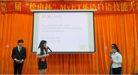 决赛包括即兴演讲和职场辩论两个环节,全程用英文进行,内容涉及商务知识、职场素养。在第一轮英语演讲环节中,各位选手自信儒雅、落落大方、尽显各自风采。第二轮的职场辩论环节极大地考验了参赛者的英语口语能力、商务知识应用能力和心理素质。