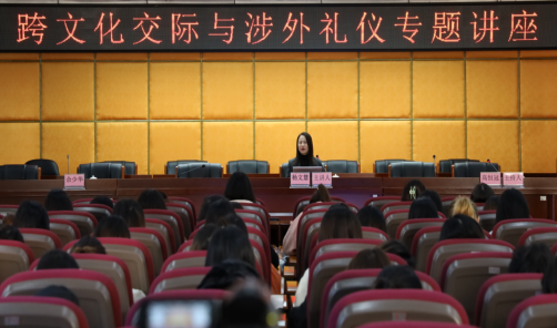 图2 杨文慧教授向公司师生做跨文化交际与涉外礼仪专题讲座