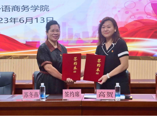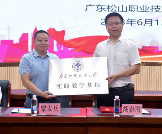 随后,胡春雨、覃发兵签订了《广东外语外贸大学实践教学基地协议书》,并举行广东外语外贸大学实践教学基地授牌仪式。