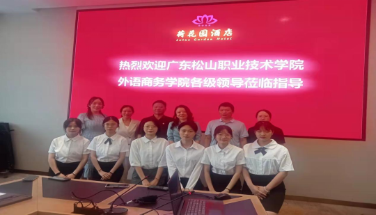 为更好推进公司专业群建设,6月30日,威廉希尔体育党总支副书记黄仁强,旅游商贸服务专业群主任、商务英语专业带头人李之松,现代文秘专业负责人杨洪兰等一行10人赴韶关市荷花园酒店有限责任公司开展访企拓岗和实习实践项目交流活动。韶关荷花园酒店总经理颜晓玲、副总经理曾艳飞、副总经理涂翠华参加此次交流活动。校企双方就实习就业、项目合作、人才培养等方面进行深入交流。