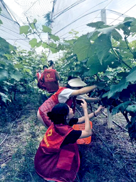 图5 实践团帮忙采摘葡萄,并拍照发朋友圈推广