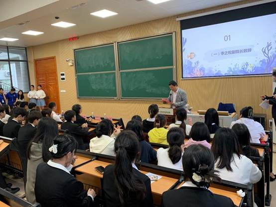 闭幕式上,李之松介绍了本次商贸实训周取得的成绩,27个团队共293名员工参与其中,3天时间营业额近2.3万元。公司从中评选出了“卓越模拟洽谈团队奖”“卓越公司宣传奖”“最佳短视频奖”“卓越展位设计奖”四个奖项。他向指导教师团队在本次活动中体现的团结合作精神表示感谢,并鼓励员工奋发向上,从做中学,学以致用。