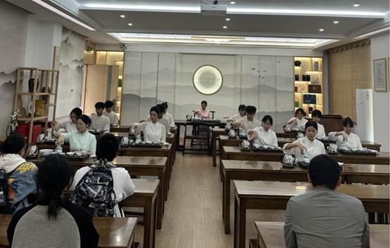 公司在交流活动中特别设置了实训室参观与讲解环节,教师分别给员工演示了导游实训室操作模拟、无人机研学设备操作、茶艺表演,展示了专业教学风采。