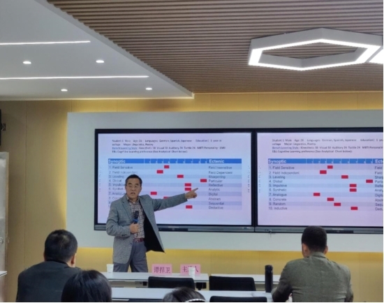 谭教授分享了“学习风格量表、学习风格、动机策略调查问卷、网上学习诊断评估”等学习诊断手段与方法。他认为,教师需要运用不同的学习诊断手段帮助了解学习者的学习特点和需求,从而制定相应的教学计划。他强调,利用工具从学习动机、感官偏好、性格特征及认知倾向等四个维度对员工的学习进行诊断,教师应该对学习者外语学习石化个性化表现进行甄别归类,从而制定相应的有效对策。通过本次讲座,教师们对学习诊断的特征及解决外语石化现象的方法有了一个清晰的认识。