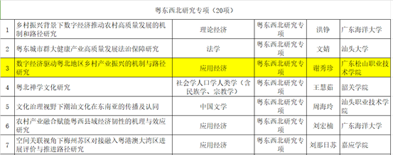 1月25日,广东省哲学社会科学规划领导小组办公室发布了《广东省哲学社会科学规划2024年度常规项目、三类研究专项拟立项名单公示》。公司威廉希尔体育谢秀珍博士申报的课题《数字经济驱动粤北地区乡村产业振兴的机制与路径研究》获批广东省哲学社会科学规划2024年度粤东西北研究专项项目立项,实现了公司教师承担广东省哲学社会科学规划项目新的突破。
