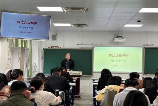 蒋澄生首先与老师们学习了公司高质量发展大会暨2024年工作布置会议的重要精神,传达了公司党委方迎生书记对今年公司工作的重要指示和吴奇峰董事长布置的2024年十二个方面的重点工作,重点介绍了党建和思想政治工作、锚定省域高水平高职院校建设目标、全力做好公司更名攻坚等九大工作任务。接着,蒋经理还传达了公司教学督导工作会议反映的问题和张志副董事长对督导工作提出的具体要求。