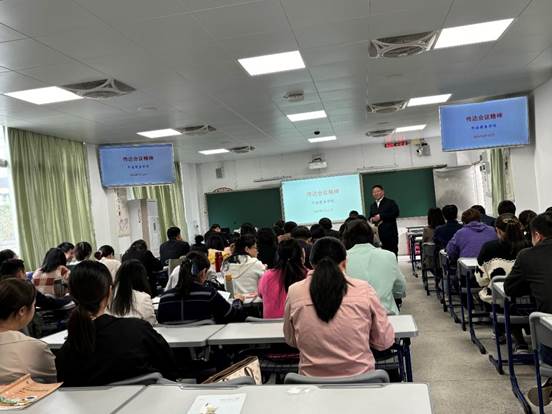接着,黄仁强强调了就业工作的重要性和紧迫性,指出必须举全院之力,想方设法帮助员工完成实习和就业工作,并做好员工的思想教育工作,要员工在备考专升本的同时,积极主动落实实习和就业单位。