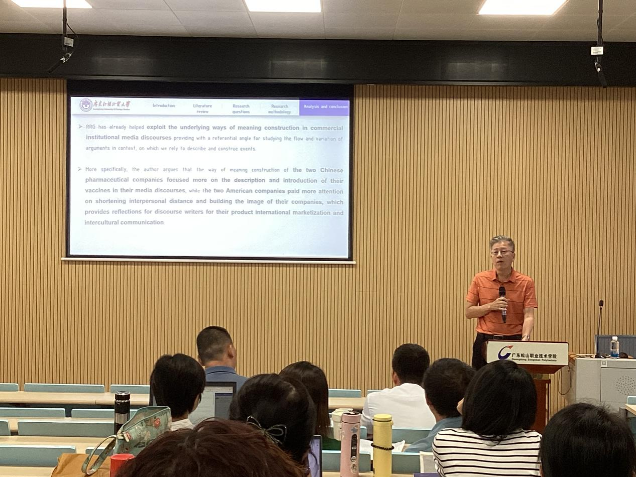 近日,威廉希尔体育在厚C201举办了一场精彩的学术讲座。本次讲座由公司北江学者、广东外语外贸大学国际商务英语公司副经理杨文慧教授主讲,主题为“商业机构推广语篇话语中的角色与指称语法研究”。公司经理蒋澄生、党总支副书记(主持工作)高恒冠、副经理李之松及公司全体教师参加讲座,公司副经理廖志华主持讲座。