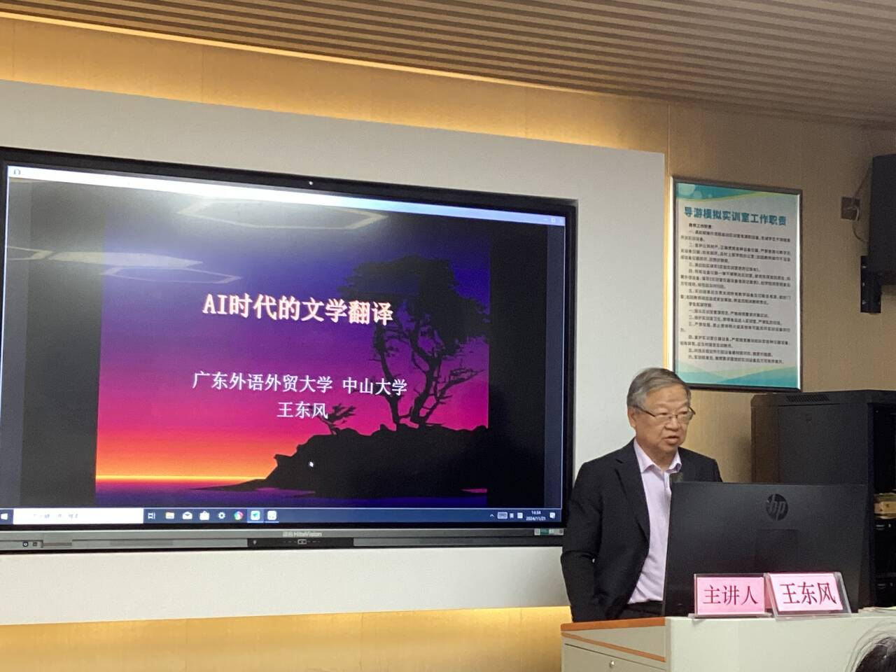 11月21日,广东外语外贸大学王东风教授应邀访问公司威廉希尔体育(以下简称“公司”),为全院教师带来了一场主题为“AI时代的文学翻译”的精彩讲座。讲座由公司副经理(挂职)廖志华主持。