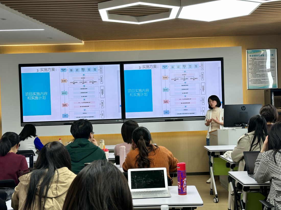 培训会首环节由往期成功立项的教师代表进行经验分享。刁薇老师率先分享了基于KOMET职业能力模型的高职数字化外语教学模式探究。她详细介绍了该模型在外语教学中的应用,强调了数字化技术如何助力职业能力培养,为参会教师提供了宝贵的实践经验。