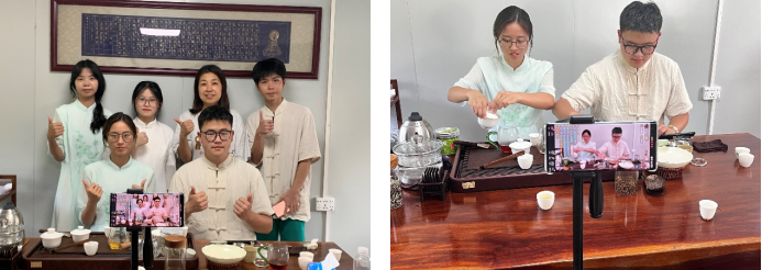 实践团队员进行茶艺直播