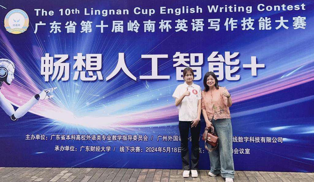5月18日,广东省第十届岭南杯“畅想人工智能+”写作比赛圆满落幕。经过激烈角逐,公司学子在此次大赛中取得优异的成绩。其中2022级商务专业员工李缘(指导教师:廖志华)获“金笔奖”,2023级数控专业员工范颖(指导教师:刘金华)获公共英语专科组赛道“二等奖”。